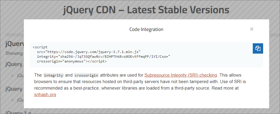 Any CDN resource should ideally be accompanied by a SRI hash, provided by the resource’s owner. But if the hash is not provided, then you can generate your own.