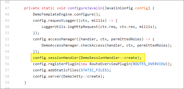 This session handler class is used to configure the session handler within Javalin - see line 55 of the main DemoApp class: