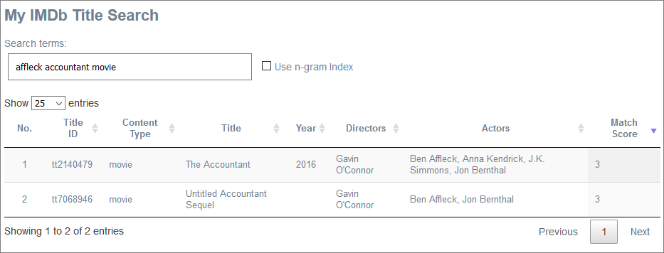 My Lucene indexes allow me to provide full-text search functionality across all 6 million of my IMDb titles - it even supports “immediate feedback” searches through its implementation of typeahead.
