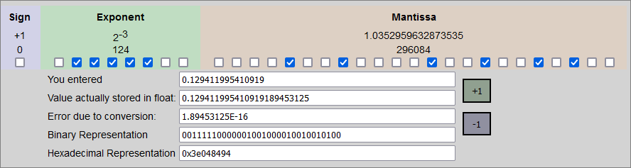 Using this online float converter, here is an example: