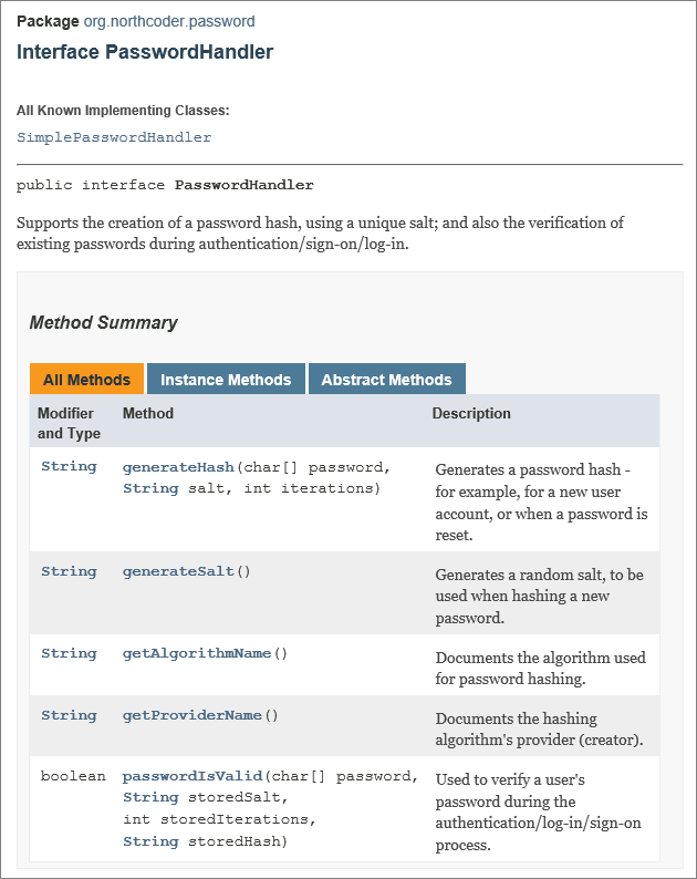 Creates a hash for a new password. It takes a password (for example, as provided in a user sign-up web form) and generates a hash, using a new salt value, plus a defined number of hash iterations. Most importantly, it uses a cryptographically secure hashing algorithm.