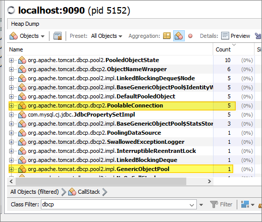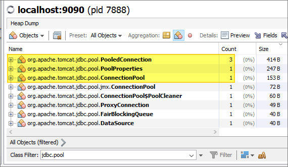 In the JVM, a connection pool was created - as shown in this VisualVM heap dump: